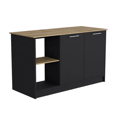 Mars Kitchen Island-two Cabinets, Countertop, Three Open Shelves-white/dark Brown, For