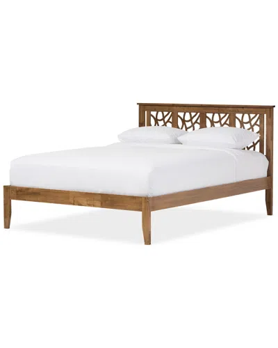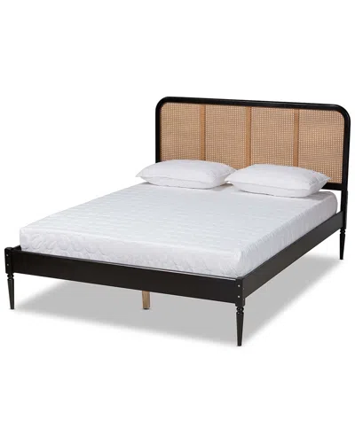 Elston Mid-century Modern Charcoal Finished Wood & Synthetic Rattan Queen Size Platfo In Brown