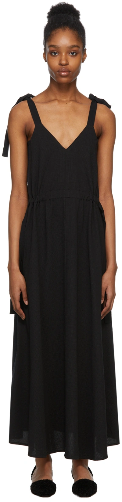 Belted Cold-shoulder Checked Seersucker Midi Dress In Black