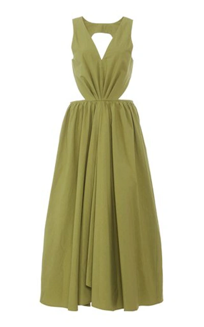 Madelyn Cutout Cotton-seersucker Midi Dress In Navy