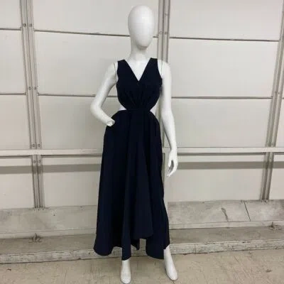 Pre-owned Madelyn Cutout Cotton-seersucker Midi Dress Women's Size 4 In Blue