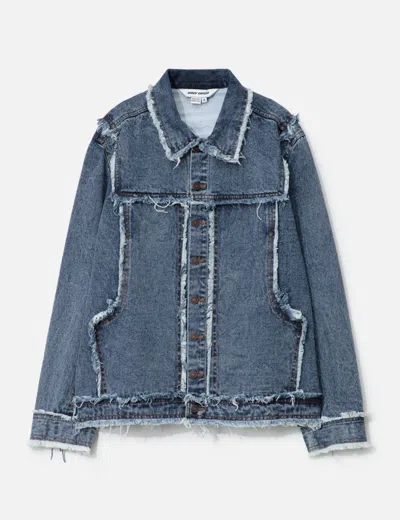 Bleached Effect Raw Edge Balloon Jeans In Orange
