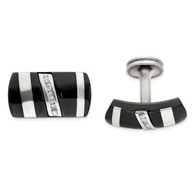 Stainless Steel Polished With Black Enamel Stripes Cuff Links