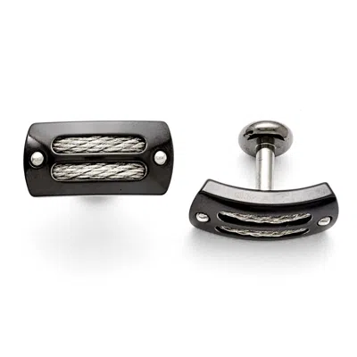 Titanium Sterling Silver Black Ti Polished Cable Inlay Cuff Links