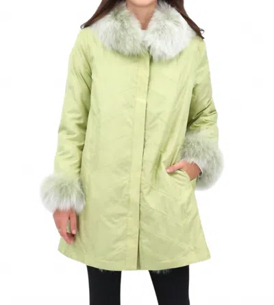 Silk Reversible Genuine Fur Jacket In Pistachio In Green