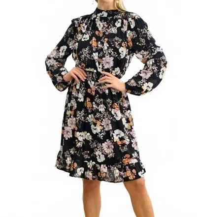 Shirred Floral Dress In Black