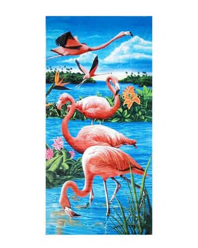 Set Of 2 Flamingos & Lake Beach Towels In Multi
