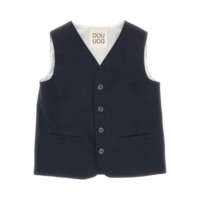 Knitted Crewneck Sweater With Logo Kids In Blue