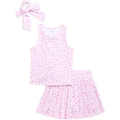 Kids' Floral Tank, Pleated Skirt & Bow Scrunchie Set In Pink