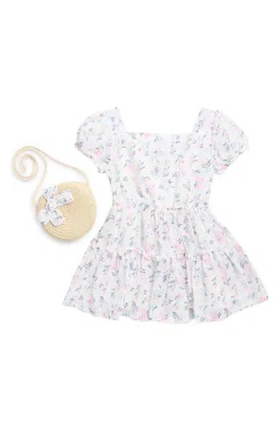 Kids' Floral Puff Sleeve Dress & Purse Set In Blue