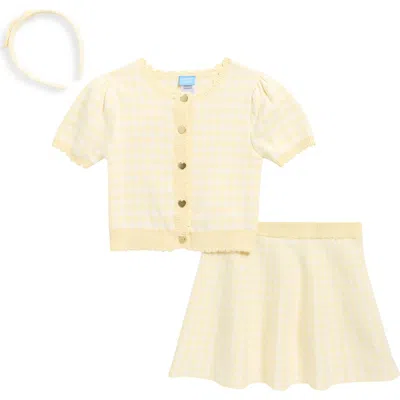 Kids' Gingham Sweater, Skirt & Headband Set In Neutral