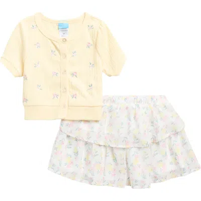 Kids' Floral Short Sleeve Cardigan & Tiered Skirt Set In Yellow