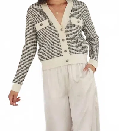 Contrast Rib Cardigan In Cream/black In Gray