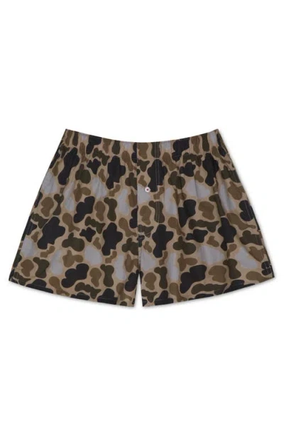 Organic Cotton Duck Camo Boxer Short In Khaki