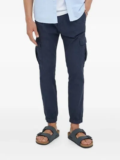 Elasticated-waist Patch-pocket Trousers In Blue