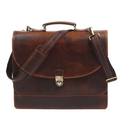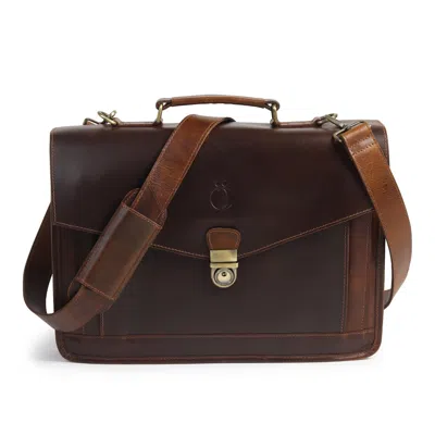 Men's Brown Leather Messenger Laptop Briefcase- Loculus