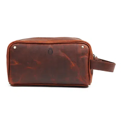 Men's Brown Leather Cosmetic Bag Dopp Kit