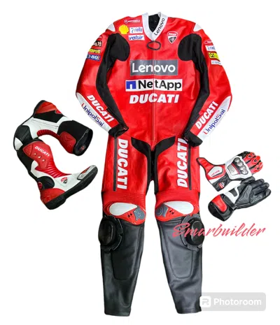 Pre-owned Motorcycle Motorbike Racing Real Leather+shoes+gloves In Red