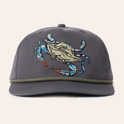 Charcoal Blue Crab Embroidered Flat Bill Cap In Gray