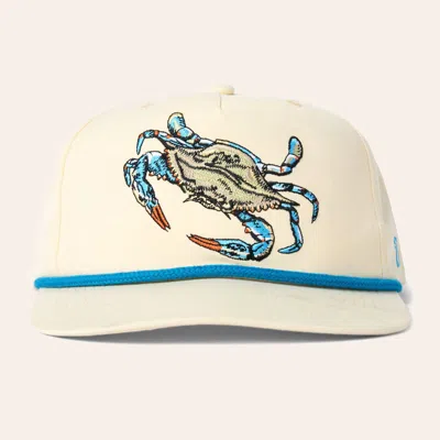 Ivory Blue Crab Embroidered Flat Bill Cap In Neutral