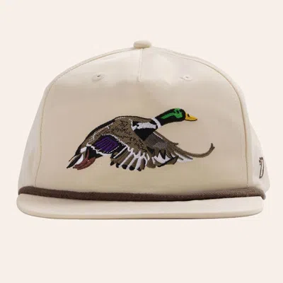 Ivory Mallard Embroidered Flat Bill Cap In Neutral