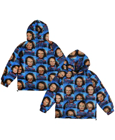 Men's Blue Chucky Repeat Puffer Hoodie Full-zip Jacket