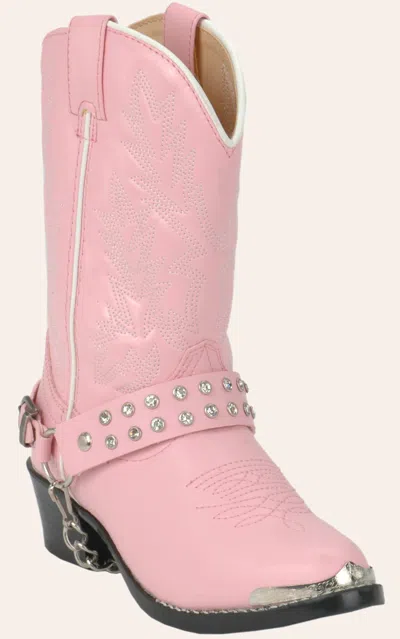 Kids Pink With Rhinestone Strap Cowboy Boots