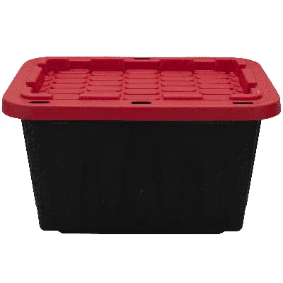 Small Storage Bin, 12 Gallon Plastic Storage Container With Snap-on Lid, Black And Red 4pack