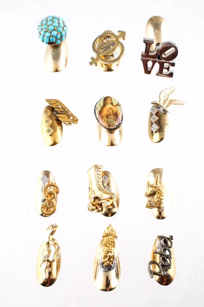 Womens Gold Tone Diamond Charm Nail Coverings Set Of 12