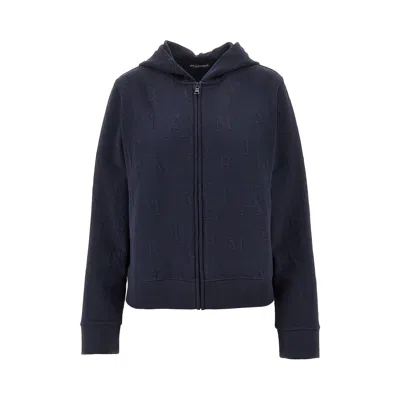 Embossed Logo Motif Full-zip Hoodie In Blue