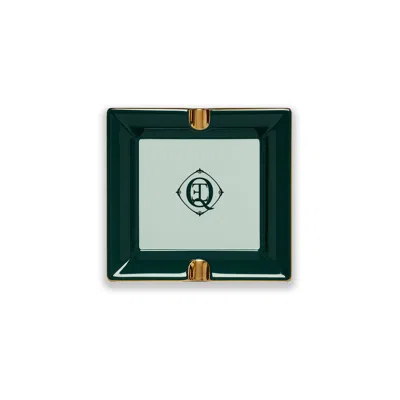 Women's Green / White Monogram Gold Trim Ceramic Catch All Tray In Multi