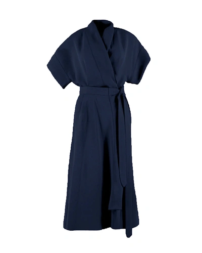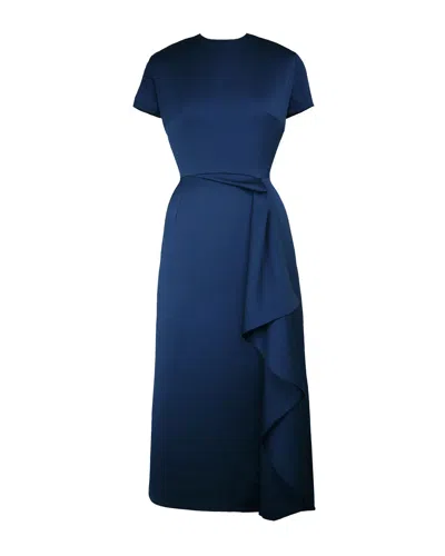 Women's Aphrodite Draped Textured-jacquard Midi Dress In Blue