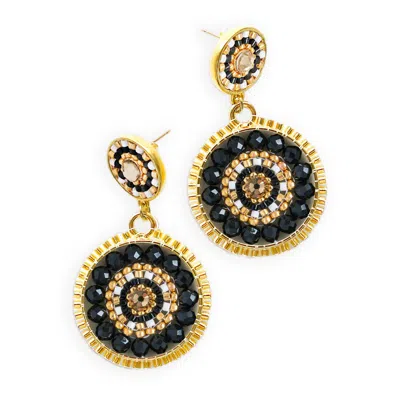 Women's White / Black Striped Medallion Drop Earrings - Little Black Dress In Multi