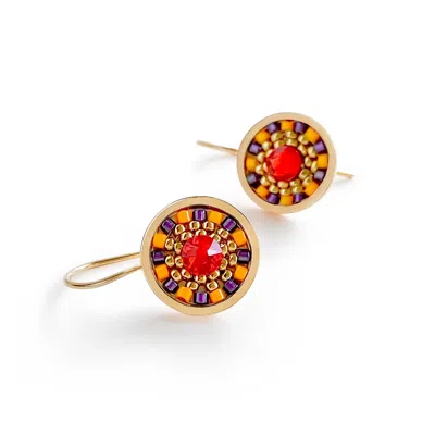 Women's Red / Purple Striped Medallion Drop Earrings - Bird Of Paradise In Multi