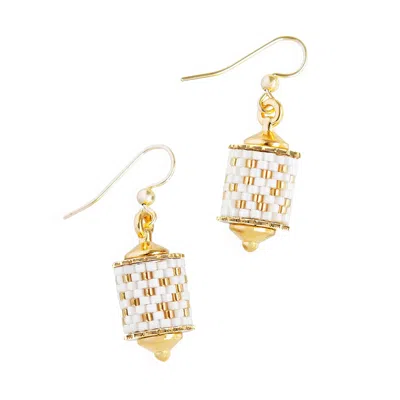 Women's White / Gold Striped Medallion Drop Earrings - Oyster In Multi
