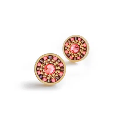 Women's Brown / Pink Striped Medallion Stud Earrings - Oriole In Multi