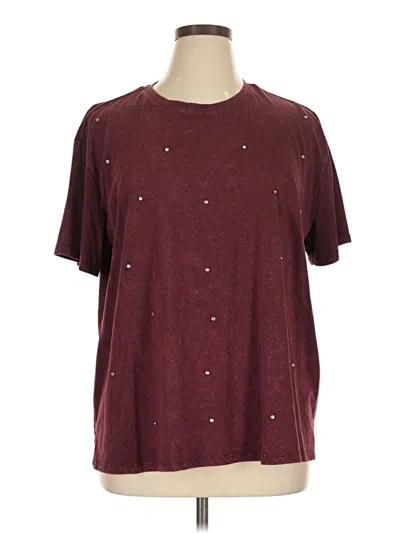 Pre-owned Short Sleeve Top Burgundy Stars Pattern Crew Neck Tops