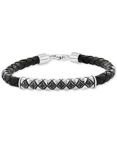 Effy Men's Black Spinel Braided Leather Bracelet In Sterling Silver