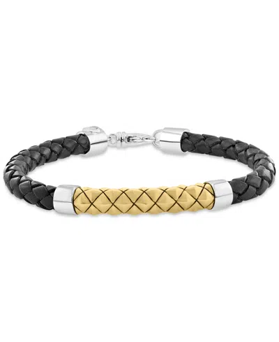 Effy Men's Braided Leather Bracelet In 18k Yellow Gold Over Sterling Silver & Sterling Silver