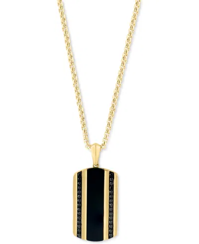Effy Men's Onyx & Black Diamond (1/5 Ct. T.w.) Dog Tag 22" Pendant Necklace In 14k Gold In Yellow Gol