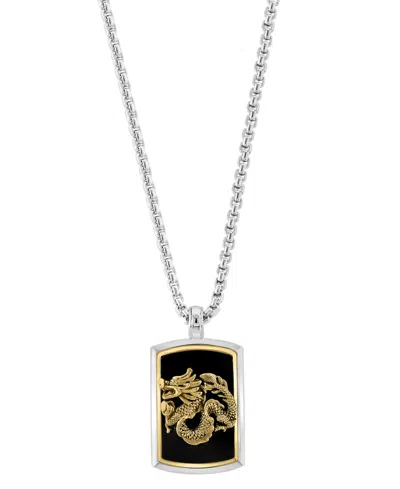 Effy Men's Onyx Dragon Dog Tag 22" Pendant Necklace In Sterling Silver & 14k Gold-plate