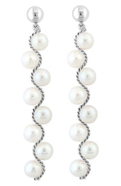 Sterling Silver 5mm Freshwater Pearl Linear Drop Earrings