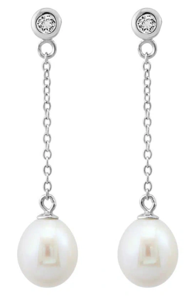Women's 14k White Gold, Round Freshwater Pearl & Diamond Drop Earrings