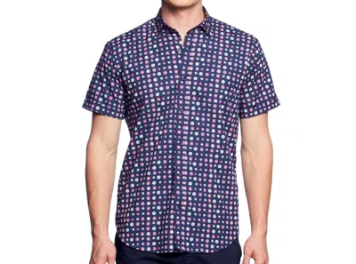 Flower Power Short Sleeve Button Down Shirt In Navy In Blue