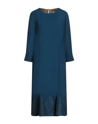 Woman Midi Dress Navy Size M Wool, Silk In Blue