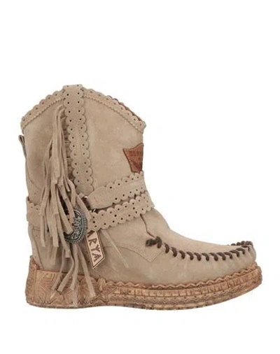 Woman Ankle Boots Khaki Size 8 Leather In Multi