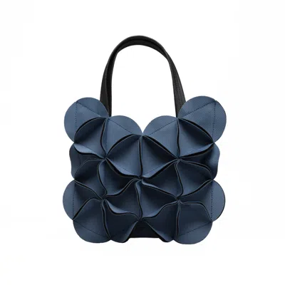 Women's Blossom Rectangle Wallet Bag Blue With Dark Bamboo Handle