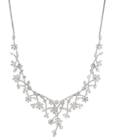 Rhodium-plated Cubic Zirconia Flower Statement Necklace, 16" + 2" Extender, Created For Macy's
