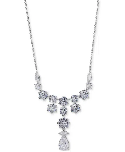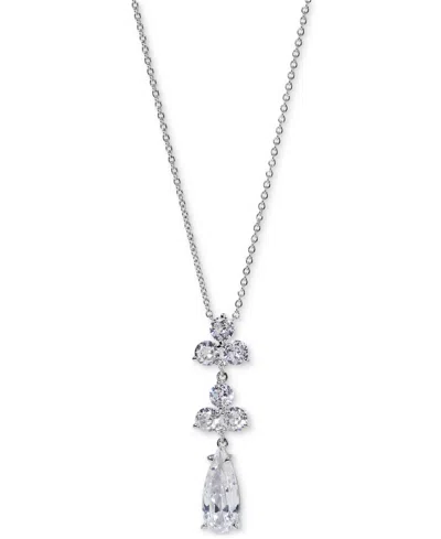 Rhodium-plated Pear-shape Cubic Zirconia Lariat Necklace, 16" + 2" Extender, Created For Macy's