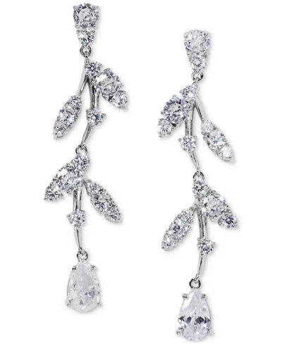 Silver-tone Cubic Zirconia Vine Linear Drop Earrings, Exclusively At Macy's In Rhodium